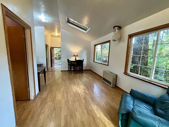 Small cabin in a redwood forest, located in desirable Fieldbrook, with privacy. Fieldbrook is 5 miles from Mckinleyville. Unit is 1 bedroom but has an additional bonus room that could be used as an office/art room. Kitchen has a brand new stove and refrigerator, but cabinets and countertops are older. Brand new paint throughout the whole cabin. New Propane monitor heater for cozy living. Spacious bathroom has shower/tub kit, and washer/dryer combo unit. The cabin sits on a 5 acre gated end of road property with 2 other residences. Each place has its own space/privacy.