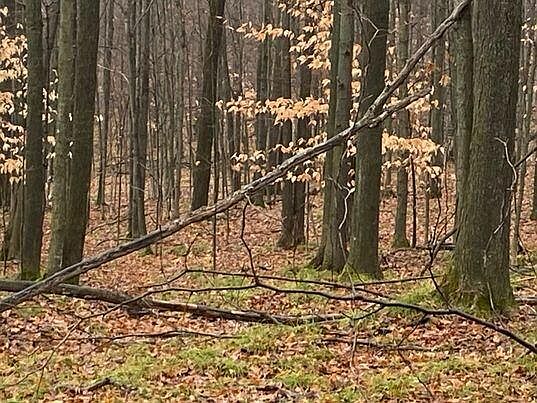 60 acres of wooded recreational land that also has a few clearings. There are oaks and maple trees and the terrain is rolling. Seller does not own the mineral rights, there is a gas well on the property.