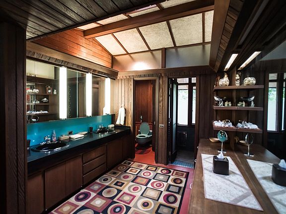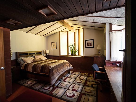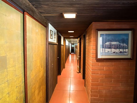 This home was designed in 1963 by a student of Frank Lloyd Wright. The home is set on a beautiful 7 acre wooded lot at the end of a quarter mile long driveway.