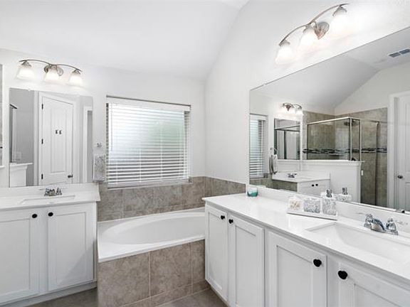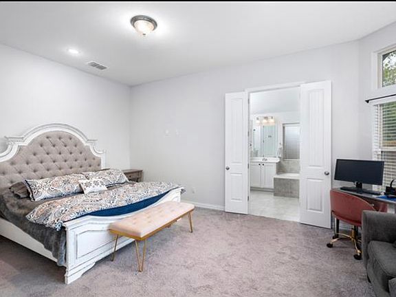 This 5 bed 3 bath has it all and backs to mature tree line for added privacy. South Facing Beautiful wood flooring throughout main living areas, tall ceilings & abundance of natural light! Sizeable guest bedrooms, front bedroom could be office space! Chef's dream kitchen boasts stainless steel appliances, gas cooktop, white cabinetry, oversized island & granite countertops. Open concept floorplan with dining space off the kitchen then leading into the living area. Large master w bay windows, dreamy ensuite features dual vanities, oversized garden tub & separate shower! Relax in the outdoor living space with bar area, covered by newly added pergola. This home has it all! Walking distance to north creek elementary and it is a ranch house single floor..