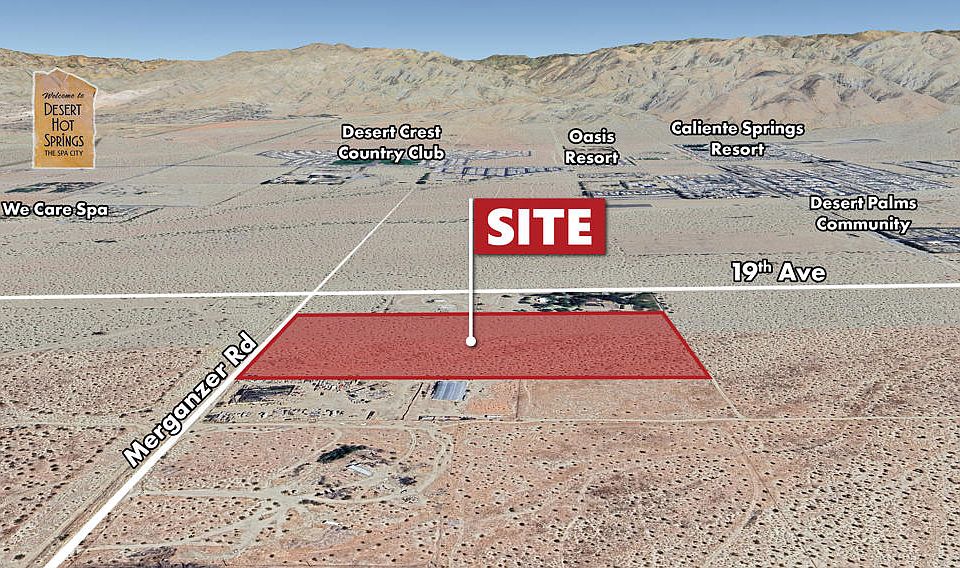 - Two 10-acre flat parcels (Each parcel is 330' x 1320')- In a hot mineral water area- Great property for a desert ranch estate or mineral water retreat- Access to the I-10 freeway in less than 10 minutes and access to the City of Desert Hot Springs in 5 minutes- Close to many mineral water hotels and less than a quarter mile away from the We Care Spa, a boutique spa hotel that has room rates as high as $1000 per night - Beautiful Views Stretching from the San Jacinto Mountains across the Entire Coachella Valley