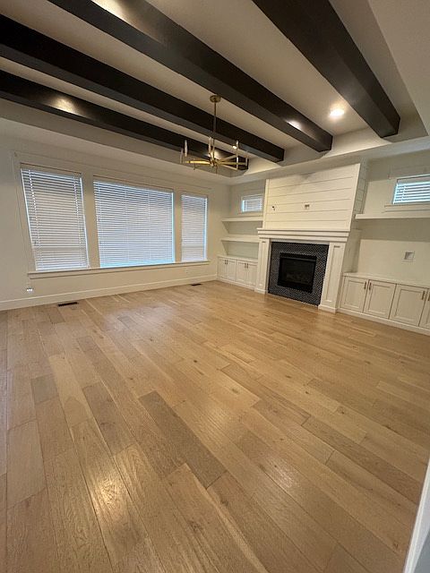 Beautiful gas fireplaceBuilt in shelvingTrendy color schemeLight and bright atmosphereHome officeAmple under stair storageLarge walk in closet
