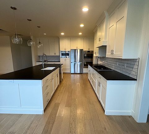 Beautiful family home with room for everyone, located in a wonderful neighborhood. As you enter this home, you will notice the light and bright atmosphere and trendy color scheme. A home office at the front of the home features beautiful herringbone tile work and ample under stair storage. Across the hall are two secondary bedrooms with built in shelving and a shared bathroom. The main living area is open concept, with a beautiful gas fireplace and kitchen with quartz countertops, tons of cabinet and counter space, and upgraded appliances including gas cooktop and wall oven. The primary suite has ensuite bathroom with soaker tub and tile shower and a large walk in closet. On the second level of the home is a large bonus room or 4th bedroom with full bathroom. The backyard is large and backs up to the community park and pool. A 3 car garage rounds out this beautiful property that is available for immediate occupancy.
