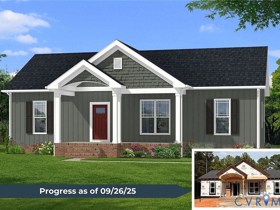This brand new Rock River Home is now being offered in the sought after subdivision of Merifield Acres! A true craftsman style home boasting rich, warm colors and upgrades galore! The Laurel Creek floor plan is a single level, maintenance free, 1,358 sq.ft., 3 bed, 2 bath home perfectly sat on over a half acre lot. This home will include Fantasy white granite countertops throughout, cathedral ceilings, LVP flooring, beautiful kitchen w/ island & Merillat cabinetry, recessed lighting, conditioned crawlspace, gutters w/ downspouts & more! Nothing is missing here from the air sealing package, 14 SEER Trane heat pump & a One Year Builders Home Warranty! Enjoy the subdivision's amenities such as the community dock, pickle ball court, playground & more! Phenomenal location just minutes from the lake, marinas, golfing, Occoneechee State park, restaurants & more! Accepting offers now with a completion date of December! End your home search today!