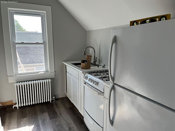 2 Bedrooms, 1 bath, new kitchen, carpeting, large closets (walk-in), parking spot in driveway, top floor with separate entrance, tenant pays gas and electric and the landlord pays heat.