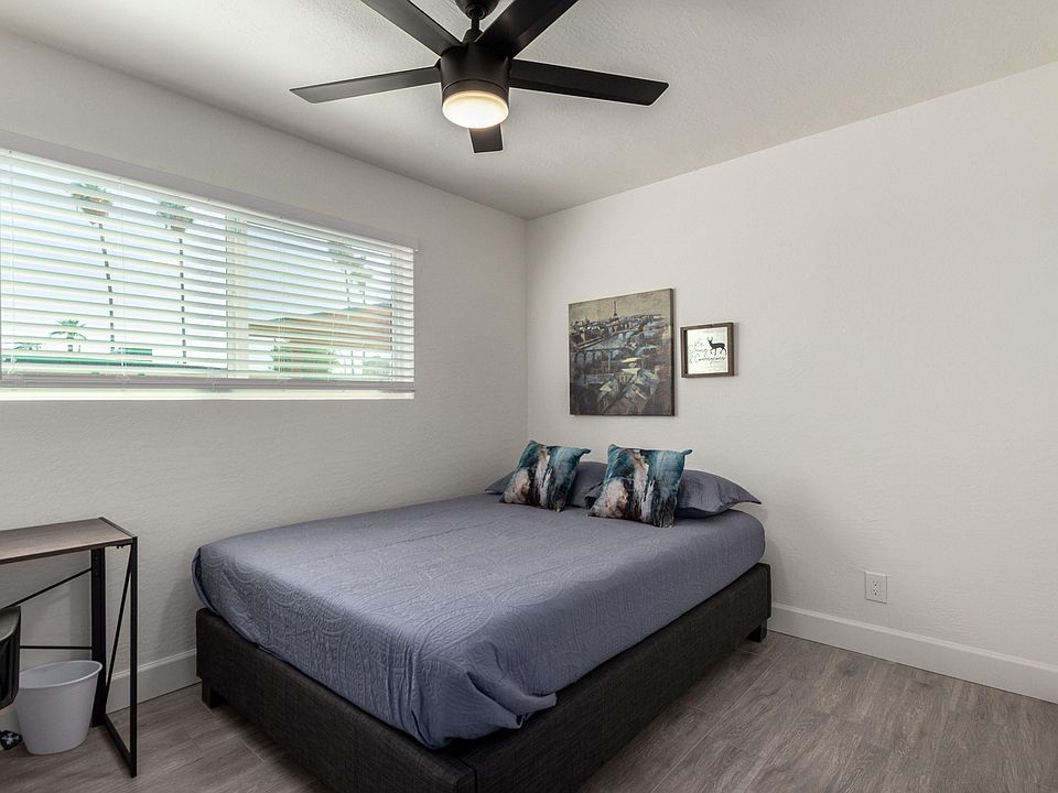 Why settle when you deserve exceptional? Fully renovated spacious 8 bedroom, 3 bath home. Fully equipped kitchen, sitting area, workstations and coffee vibe atmosphere. All queen beds with large closets each room offering ample area to make it your own. 2 Fridges plus 2 high end sets of washer and dryers. Located in Mesa near freeways, public transportation, shopping, MCC and more. This is the place you can "call and feel" at home. Huge ramada out back to enjoy your early morning coffee or watch the cotton candy sunsets Arizona has to offer. This is the one.