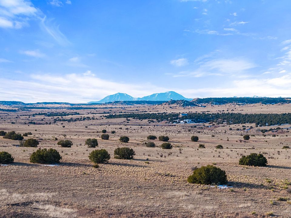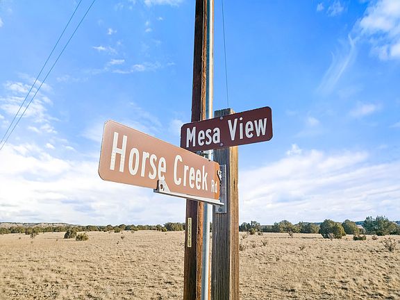 Access is straightforward and practical via Mesa View Drive, which terminates at the property, creating true end-of-the-road access with limited through traffic. Power is available at the access point, reducing upfront infrastructure considerations for a future building site. The land is fenced along the northern and eastern boundaries, and boundary pins are clearly marked, offering clarity for buyers evaluating acreage and layout. The terrain features a mix of open ground and natural features, including a deep arroyo that runs through the property and carries seasonal water during wetter periods. Scattered piñon pine and other native tree cover is concentrated primarily along the eastern boundary, adding visual interest, wildlife habitat, and natural screening. A well-located, secluded building area offers excellent privacy while still capturing expansive views.