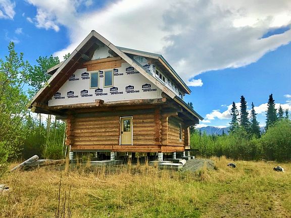 Full Scribe Log Home w/ Metal Roof & Energy Efficient Windows complete the Exterior of your new Alaskan Getaway on over 3 acres! Inside framing includes a layout of 2 Beds, 1 Bath, and Wide-Open Spaces for you to Custom Design! Mountain Views from the Decks will be calling you to stay. Whether you want to live year-round or keep it as a private getaway, finish to your liking!