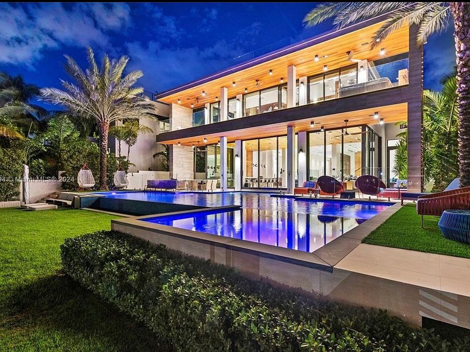 Experience modern waterfront living in this newly built Miami Beach masterpiece. Soaring double-height ceilings and a full-length skylight fill the home with natural light, highlighting stunning water views from the living area to the pool and Intracoastal. The open layout features a chef's kitchen, media room, and seamless indoor-outdoor living spaces. The primary suite offers serene water views, a private balcony with Jacuzzi, and a spa-like bath. Enjoy entertaining on the rooftop terrace with a summer kitchen and panoramic ocean and city views. Available for seasonal or annual rental.