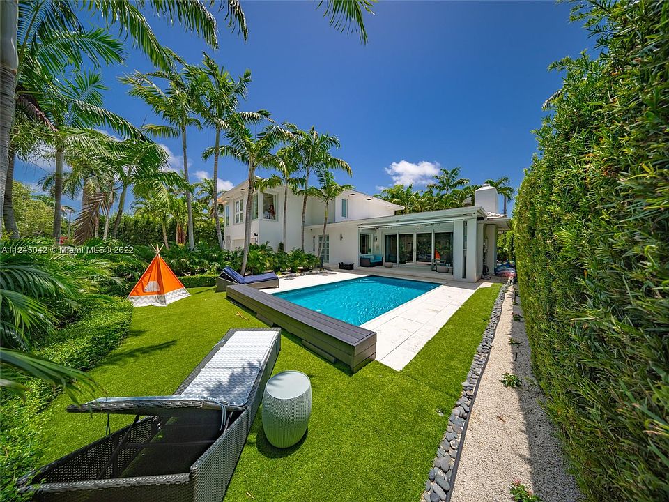 This impeccable residence features 5beds 4.5baths plus maid's quarters and offers an array of high quality modern finishes throughout. With nearly 4,000 SF, this well designed floor plan is ideal for entertaining. White oak floors throughout, heated salt water pool, impact windows, electric awning and optional screened patio, security cameras and secured gated driveway. The 1st floor consists of 2bds 2.5bth, a custom kitchen with marble counters, Gagganaeu appliances and induction cooktop. The second floor consists of the primary bedroom, walk in closet, master bath and two bright bedrooms that share a 1bathroom with shower. Walking distance to temples, churches parks and great schools!