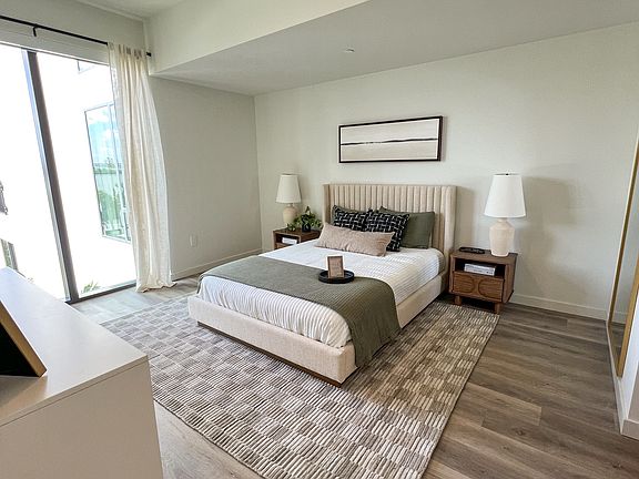 Residences feature floor-to-ceiling windows, high ceilings, and luxury tile flooring throughout. Designer kitchens come equipped with Italian cabinetry, quartz countertops, and premium stainless steel appliances. Enjoy spacious walk-in closets, sleek spa-inspired bathrooms, and full-size in-unit washers and dryers. Select homes offer private balconies with stunning views.