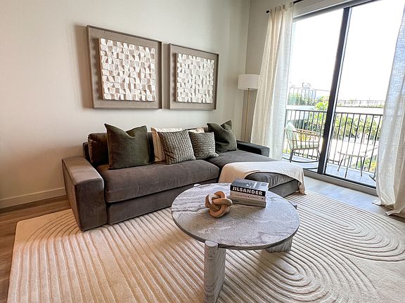 Relax at a skyline-view rooftop pool with private cabanas or recharge in the wellness spa with sauna, steam room, and more. Stay fit in the high-end gym. Entertain in the game room, media lounge, or outdoor sports courts. Work from home in stylish co-working spaces. Additional perks include a 24-hour concierge pet-friendly spaces, a residents' garage, and a landscaped courtyard and retail spaces.