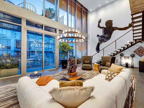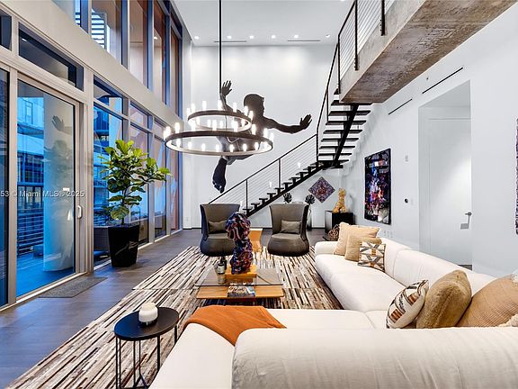 Experience Ático, a spectacular two-level live/work penthouse in the heart of Wynwood. Featured as ELLE DECOR’s Modern Life Concept House, this designer-curated residence blends modern luxury, sustainability, and creative living. The 2,821 SF interior showcases original mural art, a dramatic double-height living room, and a custom Scavolini kitchen by Daniele Busca with recycled-wood cabinetry, water-based lacquers, Gaggenau appliances, and Caesarstone surfaces. Three spacious bedrooms, 3.5 bathrooms, and curated furnishings complete the home. Enjoy 2,800+ SF of private outdoor living with large terraces and a vibrant rooftop featuring a colorful canopy, privacy Calusa hedge, professional bar, outdoor shower, multiple lounge and dining areas, and sweeping Wynwood views.