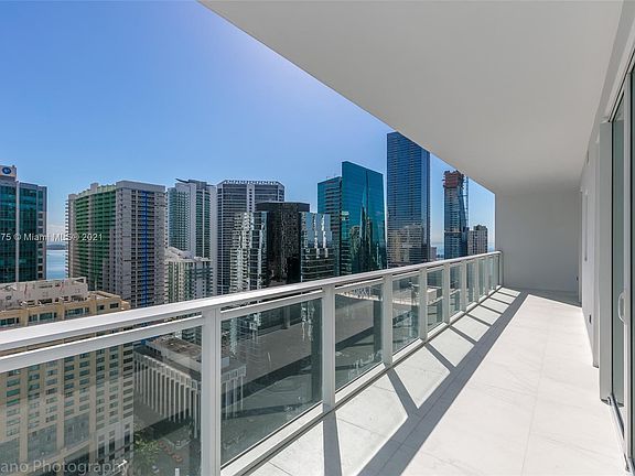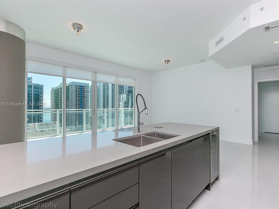 Spectacular 2 bedroom, 2 bath, corner apartment on Brickell Ave. Facing East towards Brickell Ave and pool area. Beautiful Marble flooring with matte finish. Bosch kitchen appliances, wine cooler, large master walk-in closet, and beautiful views. Amenities include: pool/spa, BBQ area, children's room, library/reading room, bar room w/ pool table, fully equipped gym, Starbucks on ground floor.
