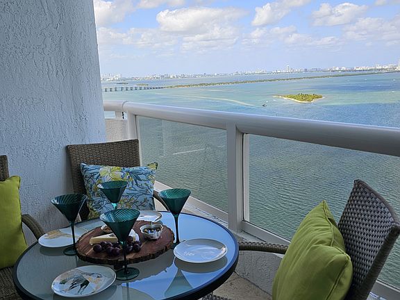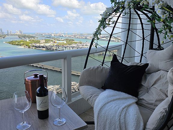 Live in style in one of Edgewater's most exclusive high-rises, just minutes from South Beach. One bedroom for rent in corner-unit condo on the 33rd floor with stunning wrap around balcony views of the bay. Furnished.