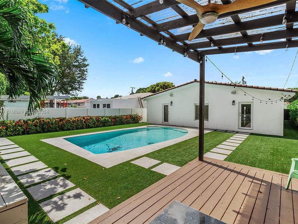 Remodeled 5 Bed / 3 Bath with backyard pool/BBQ and patio furniture. Established neighborhood in the 33134-zip code. This one-story feature has two master bedrooms with bighted-suite bathrooms, impact windows, large tiled floors, and LED lighting in an open floor plan. Perfect for a multi-generational family. The windows bring in lots of natural light. The kitchen and the bathrooms were gutted and made new on Y2020. Indoor laundry room, too. 5th bedroom can be used as a man cave, office or den too. Parking for up to 3 cars within a fenced yard, featuring electric gates. Pool area is perfect for parties & BBQ's including patio furniture and more. Coral gables Preparatory Academy, Coral Gables High School and Mater Grove Academy. Landlord is open to accept a lease with option to buy.