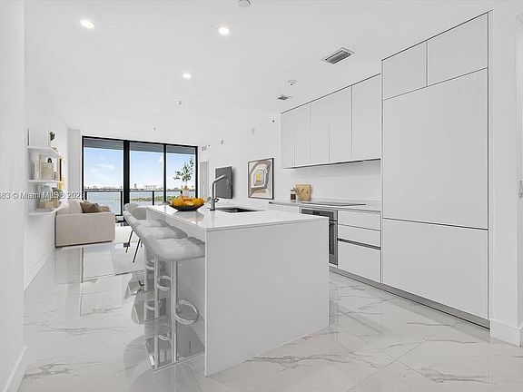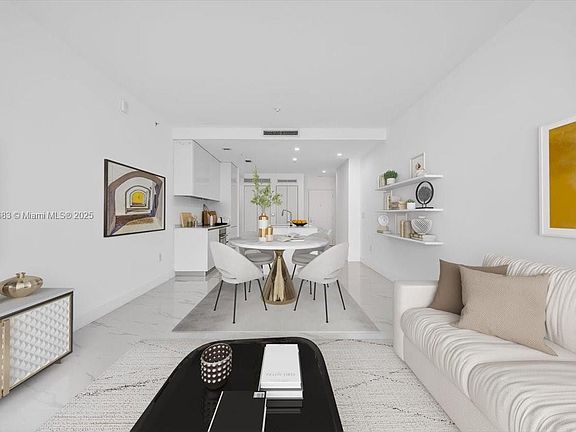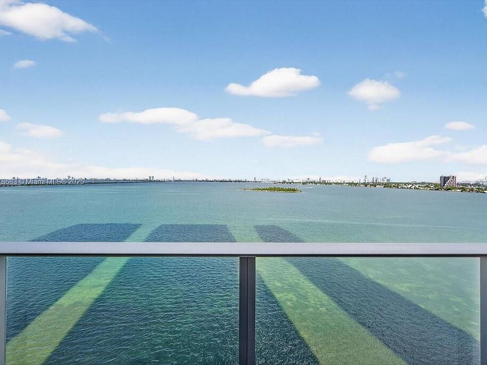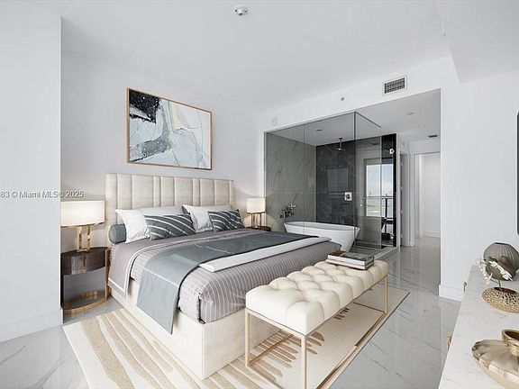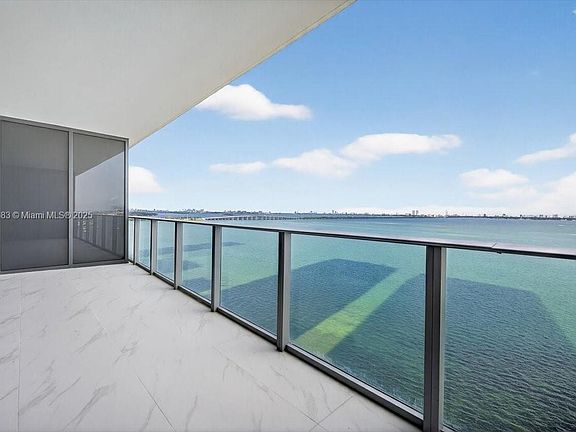 Beautifully designed 1-bedroom plus den, 2-bath home with sweeping views of Biscayne Bay and the Miami skyline. Expansive glass windows fill the space with natural light, highlighting the open layout and contemporary finishes. Set within a newly built waterfront community offering luxury, resort-style amenities. Courtesy of Douglas Elliman First, last, and security.