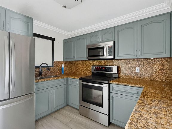 The kitchen comes equipped with a fridge, sink, oven, stovetop, as well as upgraded appliances.