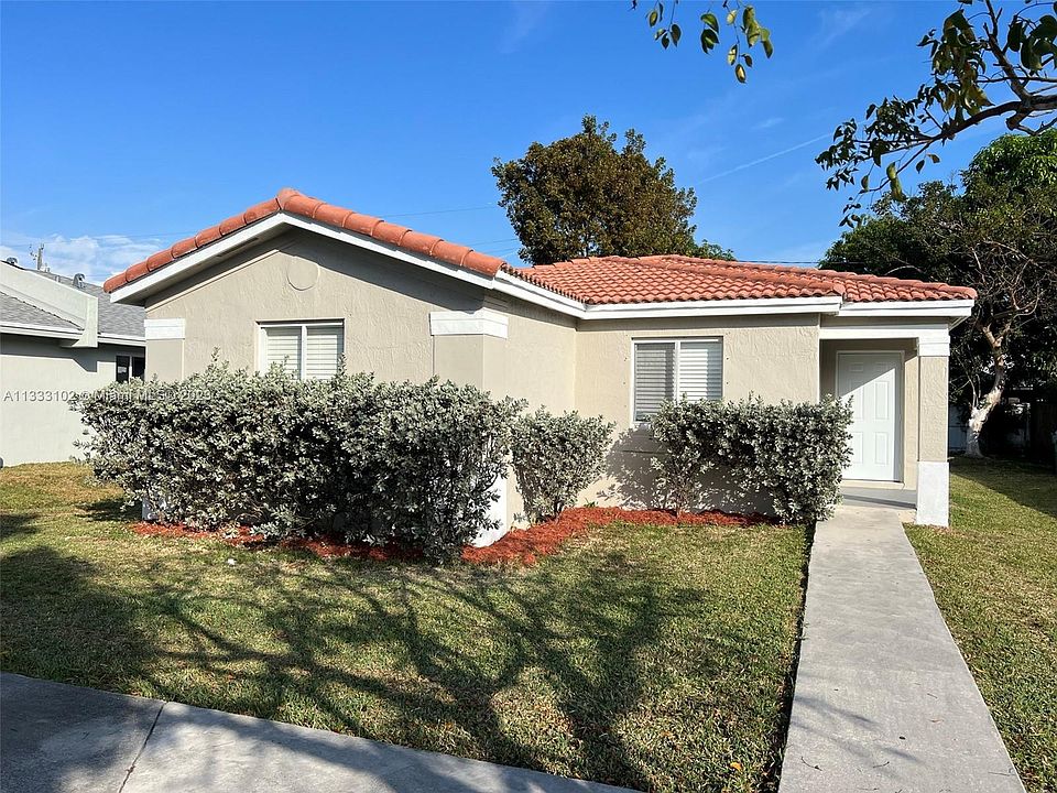 Move in ready is this newly remodeled and updated house offering new tiled floors, new kitchen, new bathrooms, new doors and trim work. New kitchen features beautiful finishes with Quartz tops and backsplash. It is freshly painted inside and out and comes with hurricane panel shutters. Area is transforming with many newly built homes in the area, including next door and across the street. Do not miss it!