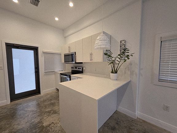 This independent studio unit offers a full-size kitchen and bath, complete with stainless steel appliances, quartz countertops, and modern amenities. The space features high ceilings, polished concrete floors, impact-resistant doors and windows with coverings, central air conditioning, and an in-unit stacking washer and dryer. Located in a quiet, family-oriented neighborhood with a rural lifestyle, the unit provides off-street parking within a separate gated entrance for privacy. Located west of Krome Avenue, near SW 216 Street. No smoking unit. Water and trash removal included. A non-refundable $50 fee applies for credit and background checks for each adult over 18. Move-in requires first month's rent, and 2-month security deposit.