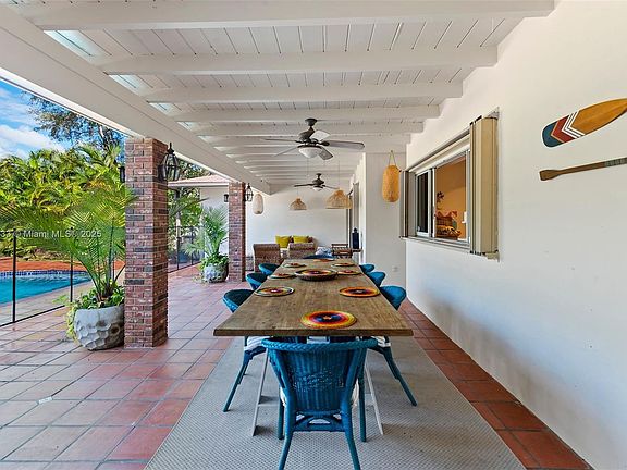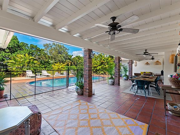 Pinecrest SPACE + privacy! Builder's acre with luscious foliage, mango trees, etc., yet blocks from restaurants, cafes, and shopping. Build new, or live comfortably in 5BD (recently converted), 3BA immaculately maintained ranch house, with functional split floor plan. Interior 2,755 sf, with total area reaching 3,272 square feet. French doors open to a beautifully maintained spanish tile patio, with oversized sparkling pool. The backyard is vast, and can easily accomodate a guest/pool home, tennis courts, or expansion of current living quarters and is ideal for entertaining. 2 car garage, separate laundry room, huge circular driveway, plus replaced aluminum roof. Walk to the top rated Palmetto and private schools. Not in a flood zone.