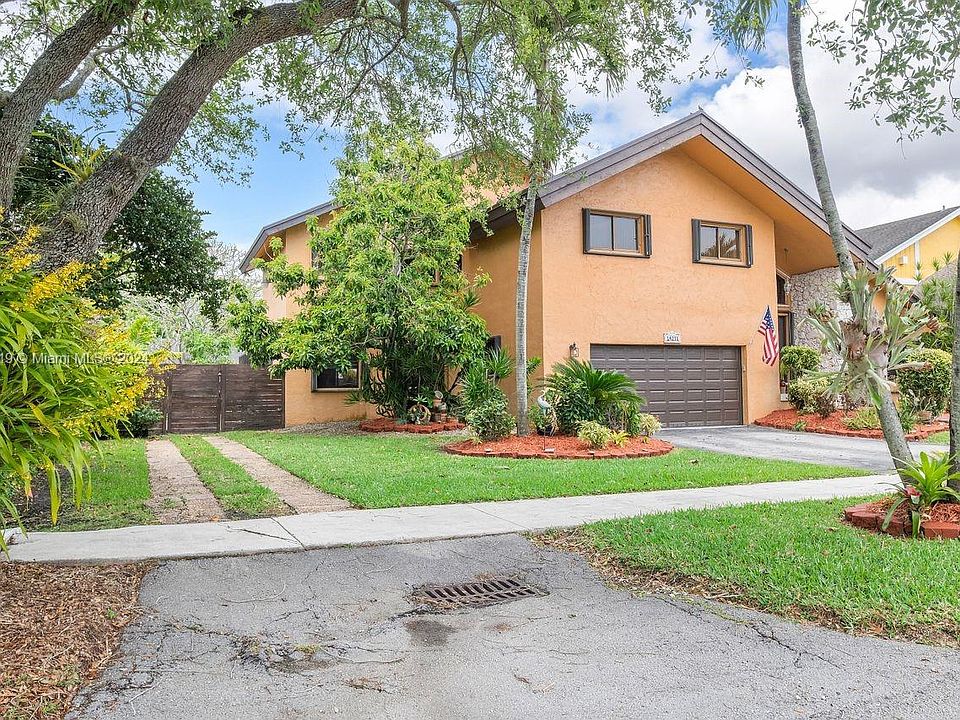 Welcome home! Nestled in a serene neighborhood, this spacious 2-story single-family home offers the perfect blend of comfort and convenience boasting: ample room to park a boat, RV, jet-skis, exercise equipment or expand the garden into your own private haven; NO HOA; generous 4BDRMS + 4FULL BATHROOMS; split-bedroom plan perfect for multi-generational living, work-from-home, or overnight guests (1BDRM + 2FULL BATHRMS downstairs & 3/2 upstairs); new roof; recently upgraded KIT & BATHRMS; freshly painted interior; effortless entertaining in the screened-in pool area; large 30'x18' pool; sunken tiki conversation pit is perfect for BBQs; 2CARGAR; NO carpets; LIVRM, DNRM, BREAKFAST area, large FAMRM; upgraded window treatments & more. See upgrades list & call today to secure your appointment.