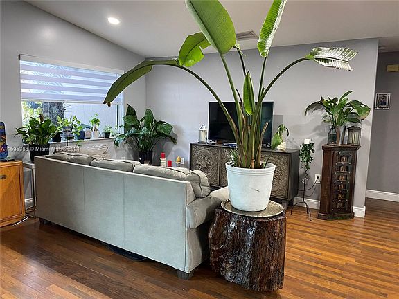 This open floor plan single family home is a 4 bed 2 bath and 1 car garage, Garage has been converted into a room and storage and can be converted back. It has wood cabinet and granite countertops with stainless steel appliances. Master and guest bathrooms has been updated, Master with shower and guest bath with a jacuzzi. Vaulted ceiling with Recess lighting. Outside house has been recently painted and has impact windows throughout. Ample back yard with many fruit trees like avocado, sugar apple and mango trees. NO HOA.