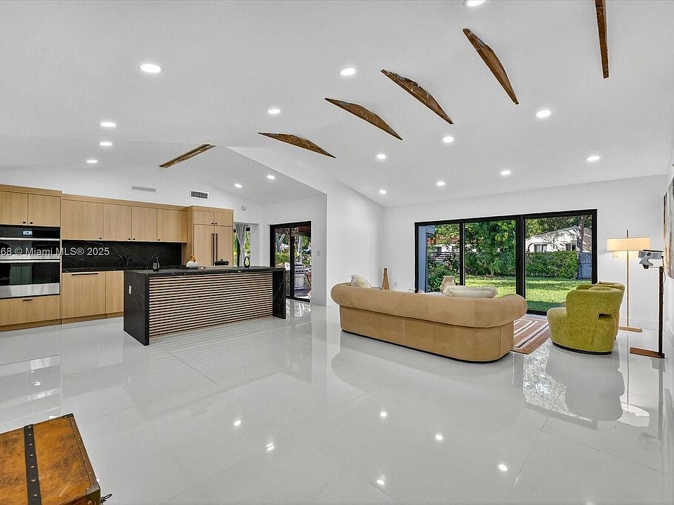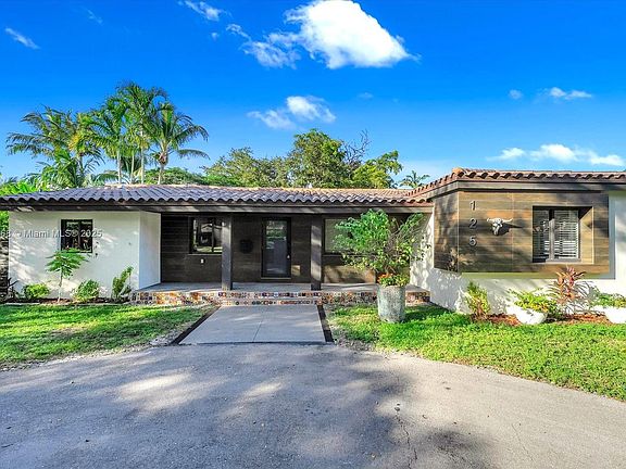 Experience modern living in this beautifully updated 3-bedroom, 3.5-bath Miami Shores home. Thoughtfully redesigned with stylish details throughout, it features an inviting open floor plan with a seamless flow between the living, dining, and kitchen areas. The chef's kitchen boasts Quartz countertops, La Belle Antique Blue backsplash, and custom white cabinetry with top-quality appliances. The converted garage provides two additional rooms, ideal for an office, gym, or guest space. Step outside to a private backyard retreat with a large patio, BBQ station, and bar, perfect for entertaining or adding a pool. Equipped with a Tesla EV charger, new roof, and impact windows. Move-in ready and perfectly located in one of Miami's most desirable neighborhoods.
