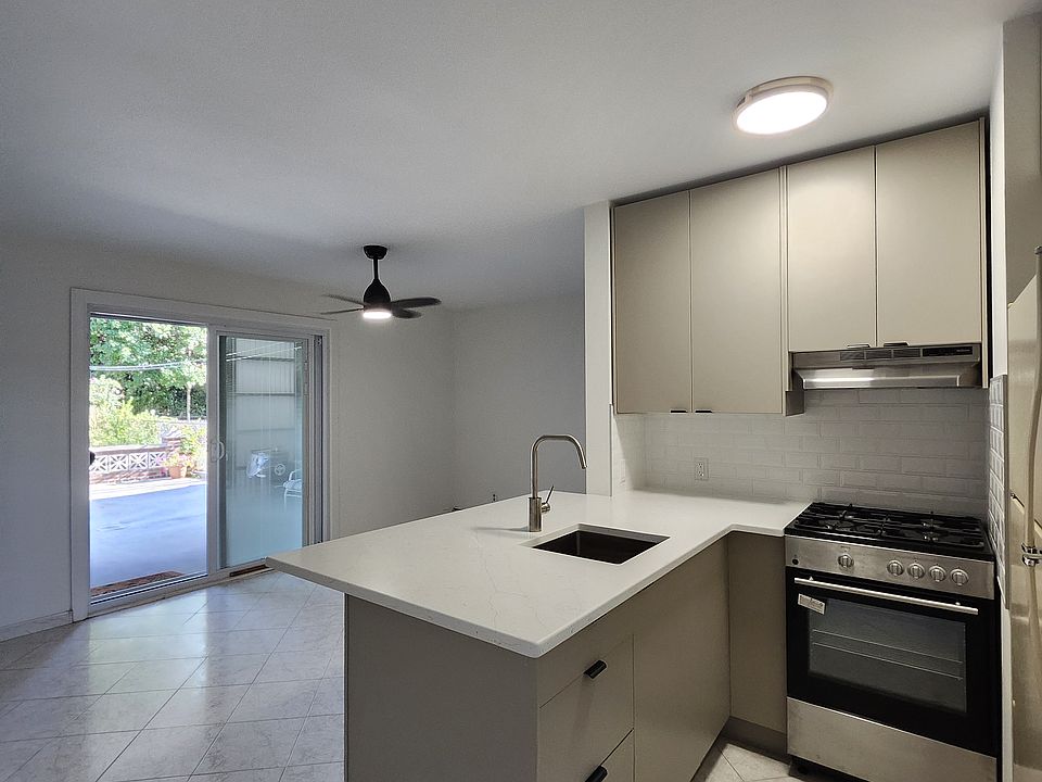 Three ample closetsCeramic tile floorsNew modern open-concept kitchen