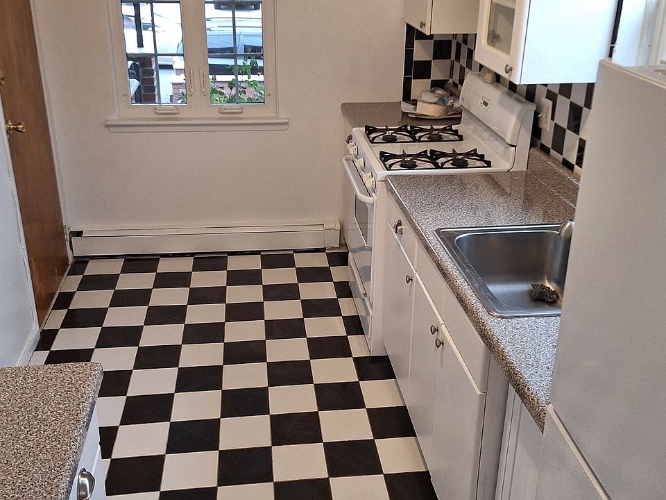 3 bedroom , 1- bath ground floor. Bright and Sunny. Galley kitchen,New countertops, Hardwood floors. Freshly painted. Front porch. Close proximity to 128 school, M-train, buses, Juniper Valley park. Tenant is responsible for Gas, heat, electricity, Available now.