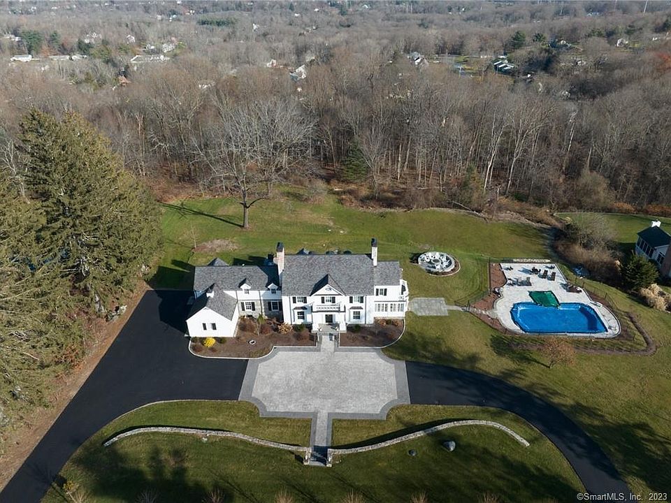 This 1929 stately 5800 sqft custom colonial, sitting on nearly 4 acres in the heart of Middlebury, has been completely updated and restored, both inside an out. Expertly combining classic elegance and modern updates making this a truly spectacular opportunity to purchase your dream home! This spacious, vintage home boasts three levels of living space, with new Marvin and Anderson windows throughout. Custom kitchen is a chef's dream with wolf double ovens, sub-zero refrigerator and freezer, oversized Carrara marble island, plenty of storage, built-in hutch and spacious eat in area. Large dining room with built ins, plus living room and family rooms with coffered ceiling, each with their own fireplace. Hardwood floors complete the main living space. Relax in the elegant primary suite, with fireplace, spacious walk in closet, luxurious bath with Carrara marble, soaking tub plus Juliet balcony overlooking the beautiful grounds. Two additional bedrooms and den on the second floor make it a perfect space for lounging or studying. The third floor offers two rooms and newly remodeled bath. The 4 season sunroom welcomes you outdoors to enjoy lush landscaping, covered patio perfect for entertaining with built in bbq and fire pit with ample seating. An in ground pool with spa and patio surround completes this entertainer's dream. An impressive circular driveway with stonewalls will greet your guests. A fabulous, private retreat just 90 miles from NYC and minutes from Oxford airport.