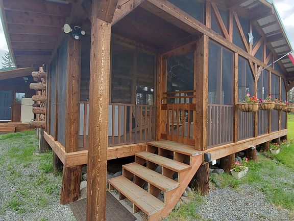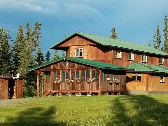 Enjoy the Spacious Screened Front Porch for entertaining or relaxing in this 4 bedrooms, 1 bathroom spacious house on 5 Acres!! This house boasts a Warm and cozy, inviting living room with wood stove. Laundry room, large, user-friendly kitchen. Dining area, Toyo stove, Propane Stove, Electricity, Crib Septic, Holding tank for water to be delivered, Large Windows, Large Shop/garage, outhouse, wood shed, Green House with water system and time and lots of garden space! Plenty of parking and all on 5 acres!! Completely live-in ready. Well insulated, metal roof, block and poured concrete foundation, Mountain View!! Great Internet Access. No Property taxes! Salmon fishing nearby!!! Located within the subsistence hunting area :) This house is a must see!!