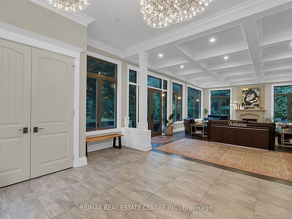 Welcome to your private retreat - this stunning custom-built home sits on 17 acres of serene countryside, offering over 6,345 sq. ft. above grade of luxurious living space. Designed with both elegance and comfort in mind, the home showcases oversized windows, luxury finishes, hardwood flooring and recessed lighting throughout, creating a warm & inviting atmosphere.The heart of the home is the expansive chefs kitchen, featuring a generous center island perfect for family gatherings or entertaining. The kitchen flows seamlessly into the family room, highlighted by beautiful waffle ceilings and large windows that bring in natural light.The massive primary suite is a true sanctuary, complete with its own lounge and study, plus a spa-inspired 5-piece ensuite featuring dual vanities and a shower with two shower heads. The 2nd and 3rd bedrooms boast floor-to-ceiling windows, filling each space with breathtaking views. For entertainment and relaxation, the home offers an impressive array of amenities: a recreation room with walkout to the outdoor pool, a soundproof private theatre, and an entire third-floor retreat with yoga-workout space. Whether you are hosting intimate movie nights or morning meditation sessions, this home caters to every lifestyle. Step outside to multiple outdoor seating areas, thoughtfully designed for large family dinners or gatherings with friends, all surrounded by the peaceful expanse of your own private 17 acres! This property is the perfect blend of luxury, generous space, and tranquility; a rare opportunity to enjoy resort-style living in the comfort of your own home.
