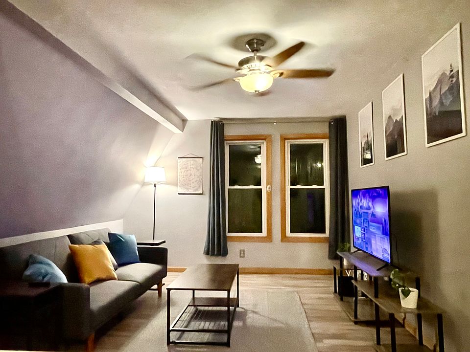 Located in Milwaukee's most desirable Bay View area, our upper duplex apartment is ready to be your new home away from home. It has everything you'll need to have a great, comfortable stay. Nicely updated and clean, this 1 bedroom, 1 bath apartment has an open concept kitchen and living room, dedicated work space, living room couch that folds down for an additional sleeping area, private balcony, exposed Milwaukee Cream City Brick, keyless entry, garage parking, and lots of extra amenities. This house is fully furnished with brand new furniture, linens, bedding, and household items. With little extras like USB outlets, phone charging cables, starter kits for the kitchen, bath and laundry, condiments, cooking utensils, electronics, kitchen gadgets, and more, we have tried to provide everything you will need to feel at home while you are here.