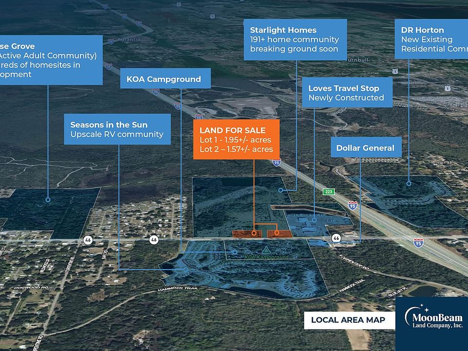 Located directly west of the newly constructed Love's Travel Stop, this area is experiencing massive residential expansion, including:Starlight Homes - 191+ home community breaking ground soon Sunrise Grove (55+ Active Adult Community) - Hundreds of homesites in developmentNew DR Horton Residential Community - Bringing an influx of new homeownersSeasons in the Sun RV Resort & KOA Campground - Increasing visitor traffic