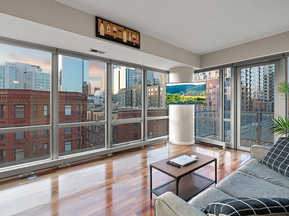 Hardwood floorsParty roomStunning downtown viewsFloor-to-ceiling windowsGranite countertopsMotorized blindsPrivate balcony