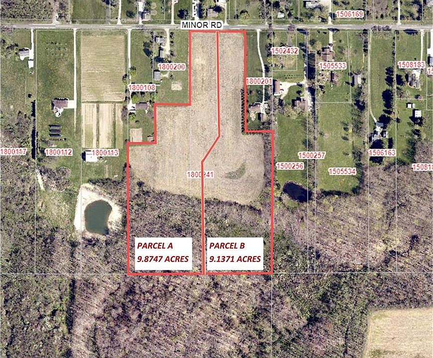 Here is your opportunity to build your dream home on a 9 acre lot in the Highland School District. Property is located on the South side of Minor Rd. across from Serenity Lane. Additional land is adjacent. (19 acre parcel was split into two parcels.) Wooded with stream at rear of property. This parcel has a water well already dug. Defined as Parcel B on aerial photo. (Enter temporary address - 4398 Minor Rd. - into GPS.)