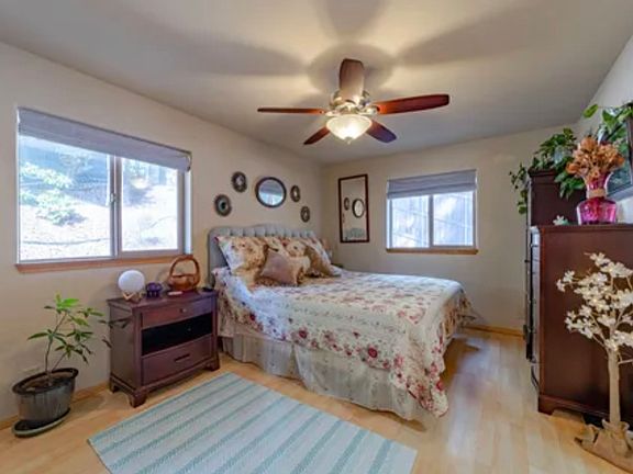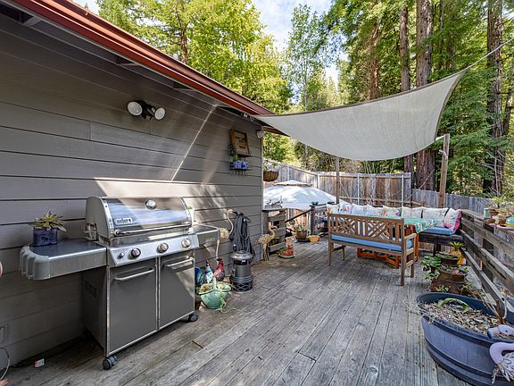 2 bedroom, 2 Bath.( 1 shower/ 1 bath-shower ) Close to HWY 101...Newer appliances, Custom cabinets. This home is fully furnished ( Bed, dressers, couch, dining table, dishes, pots and pans, towels, BBQ. StarLink available. Trash, Water and Sewer included. Fully landscaped. Fruit and citrus trees. Automatic-Gate/ paved driveway. Completely fenced and full of redwoods.