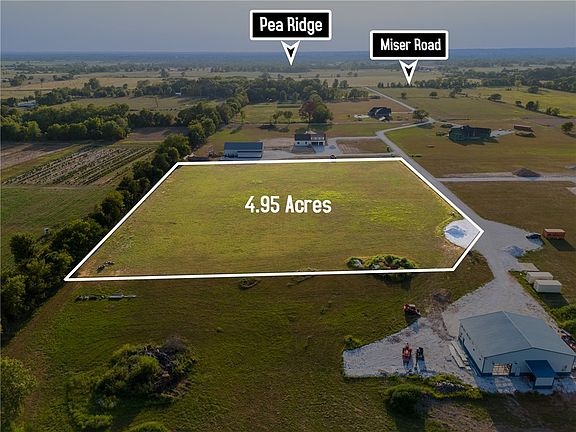 Looking for a place to build in the growing town of Pea Ridge? Then check out this wonderful opportunity to own nearly 5 acres near the military park where sunsets are gorgeous and you are just outside the hustle and bustle of town! Take a drive out to the property and look at the houses that are being built on the street. This is going to be a lovely neighborhood! Convenient to all of NWA but with the peace and quiet that Sunrise Ridge Estates offers! This lot is beautiful flat pasture with trees on the edges! Only 15 minutes to I49 & Wal-Mart Home Office. Parcel # and taxes are unkown due to this being a newly formed lot. Septic will be needed but water and electric are at the street.