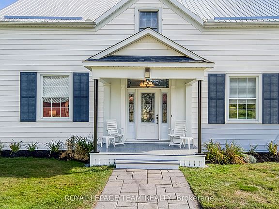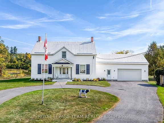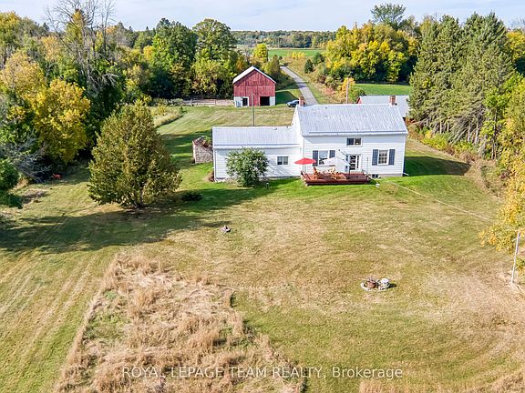 Experience the best of country living at Otter Glen Farm, a completely private 80 acre +/- waterfront estate that combines the natural beauty of a rolling farm landscape, frontage on two rivers, and unique features such as the ruins of the former Otter Glen Woolen Mill and a late 1800's stone smokehouse. With approximately 2,000 feet of waterfront on both the Mississippi River and the Indian River, this one-of-a-kind property offers an expansive rural recreational and agricultural lifestyle, only 10 minutes from the friendly town of Almonte, and just 30 minutes from Kanata. The property offers a professionally renovated century home that has been meticulously maintained. It features an open staircase main entrance hall, which opens onto an expansive living room and dining room with river views. The large gourmet kitchen has a central island, fireplace and spacious family gathering area. Cove moldings, high ceilings, wide baseboards, plank wood floors, and deep window sills complement the heritage feel of the home. The beautiful open stair case leads to two unique landings, one which offers a spectacular view of the Mississippi River. Upstairs are three generous sized bedrooms, two with walk-in closets, and a four piece bathroom. This panoramic property has many unique features including rolling fields, river access for kayaking and canoeing, walking trails through century old oaks, and heritage buildings and ruins for exploring. It offers approximately 50 acres of tile-drained land which is currently leased to a local farmer, a 1,300 sq.ft. drive shed, and main bank barn used for storage. This is a very private waterfront estate with heritage history, agricultural potential, and incredible waterfront views on two rivers. This farm is spectacular and offers many features rarely available in one property. Be sure to check out the drone video!!!