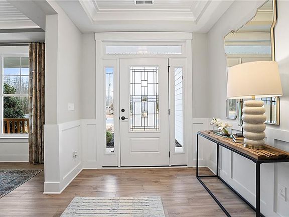 The McDowell at Windsor Station is a two-story, four-bedroom, three-and-a-half-bath home with a first-floor primary bedroom, formal dining room, two-story family room, kitchen with an island and pantry, and a separate breakfast area. The second floor features three spacious bedrooms and two additional baths, including a Jack-and-Jill bath between bedrooms two and three, an oversized open loft area, and an unfinished storage area. Options available to personalize this home include an alternate kitchen layout with a butler's pantry, a guest suite with a full bath or an office instead of the formal dining room, a sunroom, screen porch or covered rear porch, an additional upstairs loft area or a media room, an additional laundry room with the media room option, a bonus room instead of the open loft, or a second primary bedroom with full bath. Enjoy small-town charm in Windsor with quick access to Route 460, shops, and dining. Thoughtfully crafted for comfort, style, and efficiency.