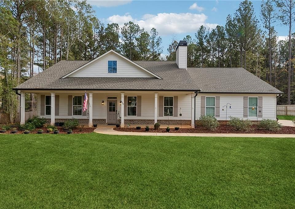 BETTER THAN NEW! Don't miss this gorgeous, ranch 4BR home on 1.86 acres. Features rocking chair front and back porches overlooking beautifully sodded and landscaped yard. This home features an open, vaulted great room with a fireplace. Its open floorplan is perfect for entertaining. Kitchen offers an abundance of cabinets and countertops. Large granite island that is open to dining area. Spacious owners suite has trey ceilings, walk in closet and generous sized bath with double vanity area and separate tub and shower. There are 3 large secondary bedrooms and a full hall bath on the opposite side of the home for privacy. Generous laundry room and mud area with an attached two car garage. Backyard is fenced.