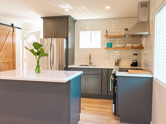 The apartment was designed for discerning, on-the-go individuals who desire an upscale, comfortable home living environment. In the kitchen, all stainless-steel appliances blend harmoniously with quartz countertops and solid red oak open-shelving. The kitchen island is positioned for beautiful mountain views while enjoying your coffee or a meal. The bathroom features a beautifully stained wooden track barn door entrance, Mora Classic ceramic tile floors and frameless shower glass doors. Conveniences not commonly found in small rentals include a washer/dryer unit, swivel wall mount for television and additional attic storage space. Bar stools also included, if desired. Clean, filtered water provided by a whole house water filtration system. Tenant will have their own private entrance and a small outdoor area creates an open-air retreat. This lovely Studio is only mile from Monrovia Station, part of the Foothill Gold Line Extension from Pasadena to Azusa, offering easy transport to Union Station in Downtown LA. Rent includes electric, gas, water and shared trash service. NOTE: Unfurnished apartment. Bed not included.
