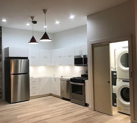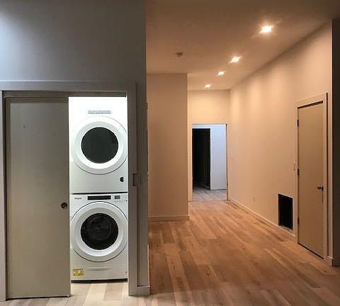 In-unit washer and dryerMarble bathroomElectric stoveHardwood floorsGranite countertopSteel appliances