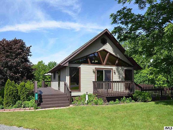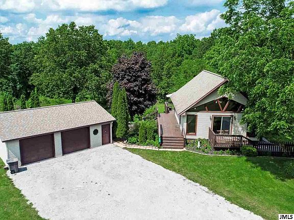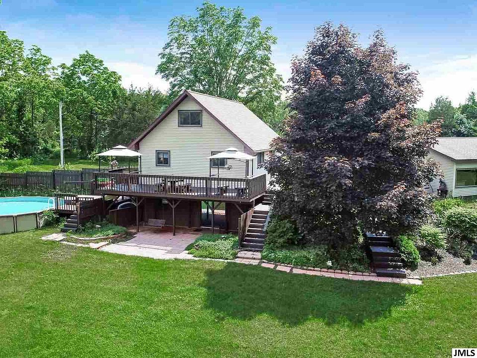 Hunting, Fishing, Boating, Outdoor Play All Year Round! This 3-4 bedroom, 1.5 bath home is situated on 10.65 gorgeous acres (3 parcels) with 549 ft of water frontage on Bonnymede Bay, leading to Center Lake and to the Chain of Lakes! Natural gas & cable, too! A wonderful gathering place with scenic views, a private road leads to the water front, lots of wildlife! The open concept and beautiful woodwork gives this home a comfortable cabin feel and offers flexible living space, all appliances stay! Great room with a vaulted ceiling and open kitchen on the main level, along with 2 bedrooms and a full bath. Spacious 2nd floor loft bedroom & bonus attic storage. More fantastic living space in the finished lower level complete with a large rec room, walk-out slider to the patio, a half bath (which can be easily converted to a full bath) and a non-conf. 4th bedroom. Large deck, nice yard with a fenced-in area, pool & a great 2.5 car garage/man cave (pole barn construction) with a view!
