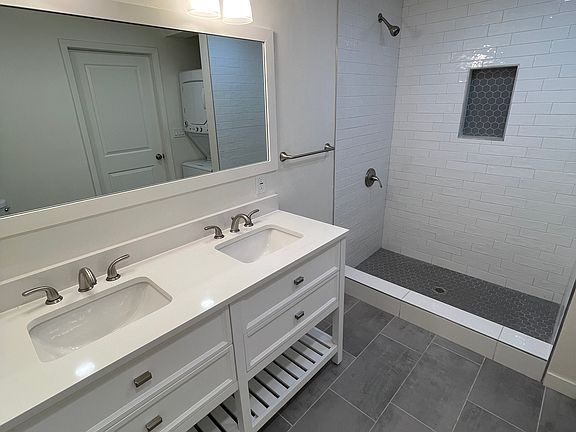 Bright white bathroomNew flooringGated propertyRecessed lightingVinyl plank flooringBack patioClean updated kitchen