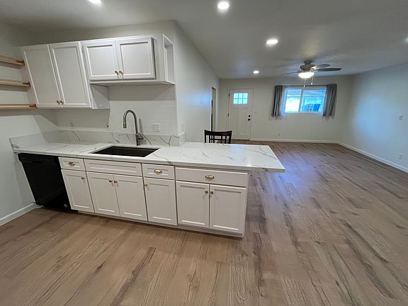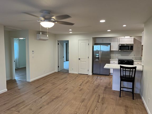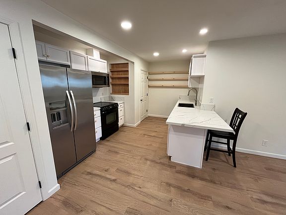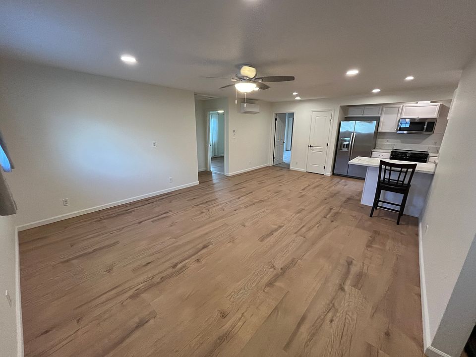 New energy efficient air conditioning and heaters in every bedroom and living room. Also includes ceiling fans in every room, upgraded quartz countertops in the kitchen, washer/dryer in-unit, dishwasher, refrigerator, electric range and a built-in microwave all included. Large walk-in pantry with built-in shelving. Small private fenced back yard. Side patio (unfenced) with view of open space and sunsets with room for table, chairs, fire pit and BBQ. Two uncovered parking stalls available.