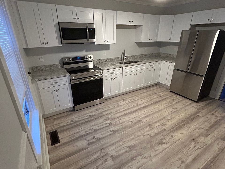 This home features a brand new kitchen with high quality granite, new stainless steel appliances, birch wood cabinets, remote controlled ceiling fans in each room, walk in tile shower, and more.