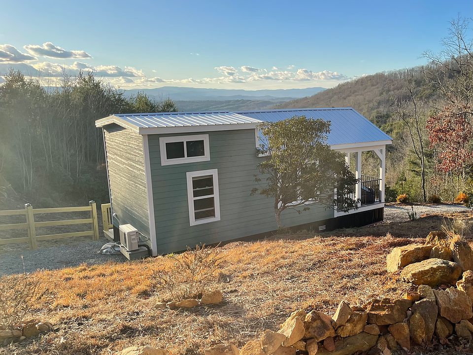 This brand-new tiny home is fully and tastefully furnished. It is a studio-style bedroom with a queen bed, a privacy blackout partition curtain, and a loft with a queen-sized mattress. There are storage drawers beneath the bed, along with a half-sized closet. Nestled at the end of a private road, the home offers a serene setting bordering a 230-acre protected sanctuary, with miles of hiking trails literally just outside your front door. Step onto your private front porch and deck and take in exceptional long-range Blue Ridge mountain views and breathtaking sunsets every evening. The home is located just 10 minutes from the charming mountain town of Blue Ridge, offering the perfect balance of privacy and convenience. The kitchen features high-end stainless steel appliances and granite countertops, and a GE stacked washer and dryer. All utilities are included in the monthly rent, including electricity, water, and trash service. An extra deck overlooks an undeveloped natural landscape with layered, long-range mountain views that define authentic mountain living. Owner pays for water, electricity and trash service.
