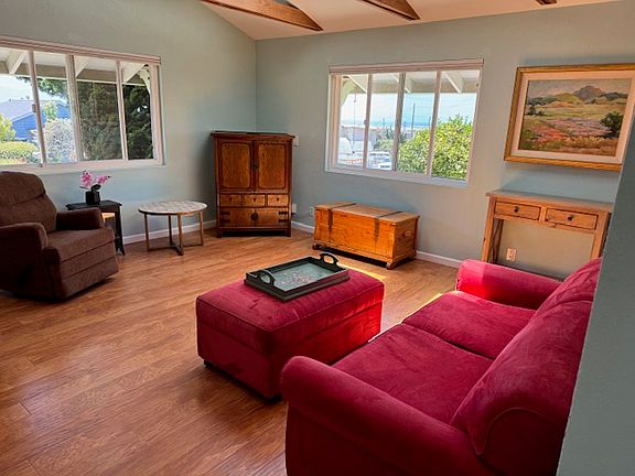 Close to the Bay, this charming one-bedroom cottage, with lots of light, is located on a large corner and just three blocks to the Embarcadero. Can be partially furnished. A spacious living room and bedroom, upgraded kitchen, indoor laundry room, skylights, hardwood floors and tile floors. An inviting front patio with a porch swing, lush landscaping that surrounds the house, all in a truly quiet and serene setting. This can be a fully equipped home, perfect for short term 30-day vacationers or long term tenants. Some flexibility. Sleeps two people in a queen bed with a sofa bed in the living room. There are no other tenants on the property. Monthly rent is $2700 with a deposit and/or cleaning fee. Pets considered.